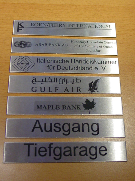 Durch die Bearbeitung mit dem Co² Laser besteht die Möglichkeit die Gravuren individuell nach IIhren Angaben auszuführen. Die Schriftarten sind ebenso frei wählbar wie die Materialfarbe. Nicht gespeicherte Schriften können durch übermittelte Schriftenordner umgesetzt werden.